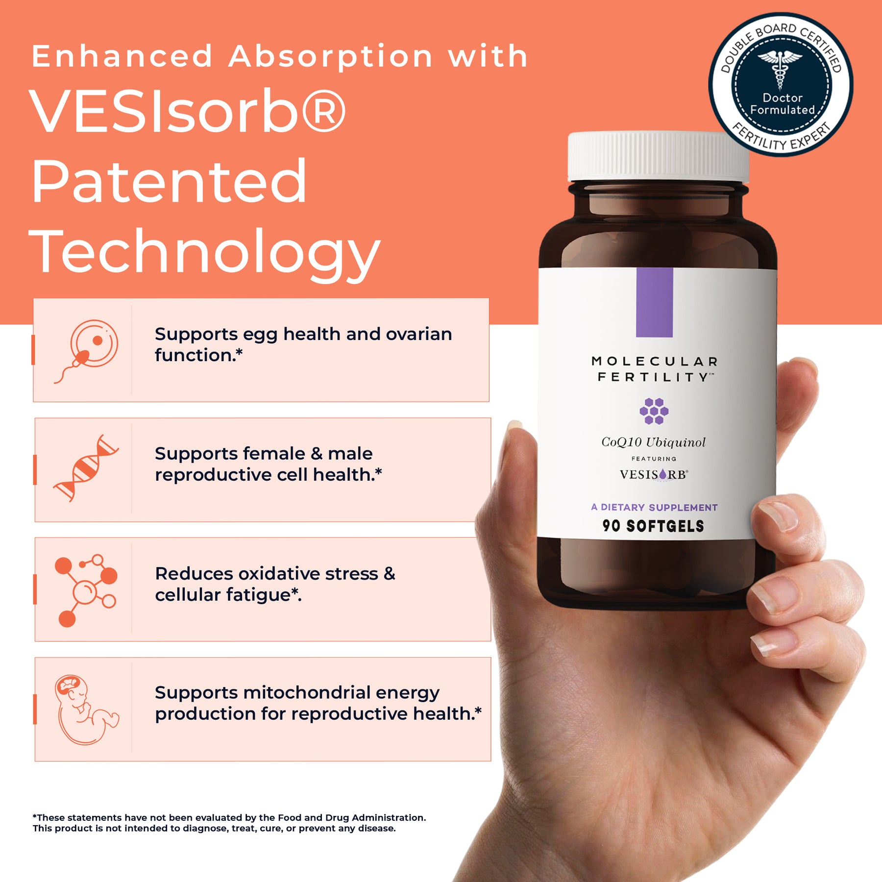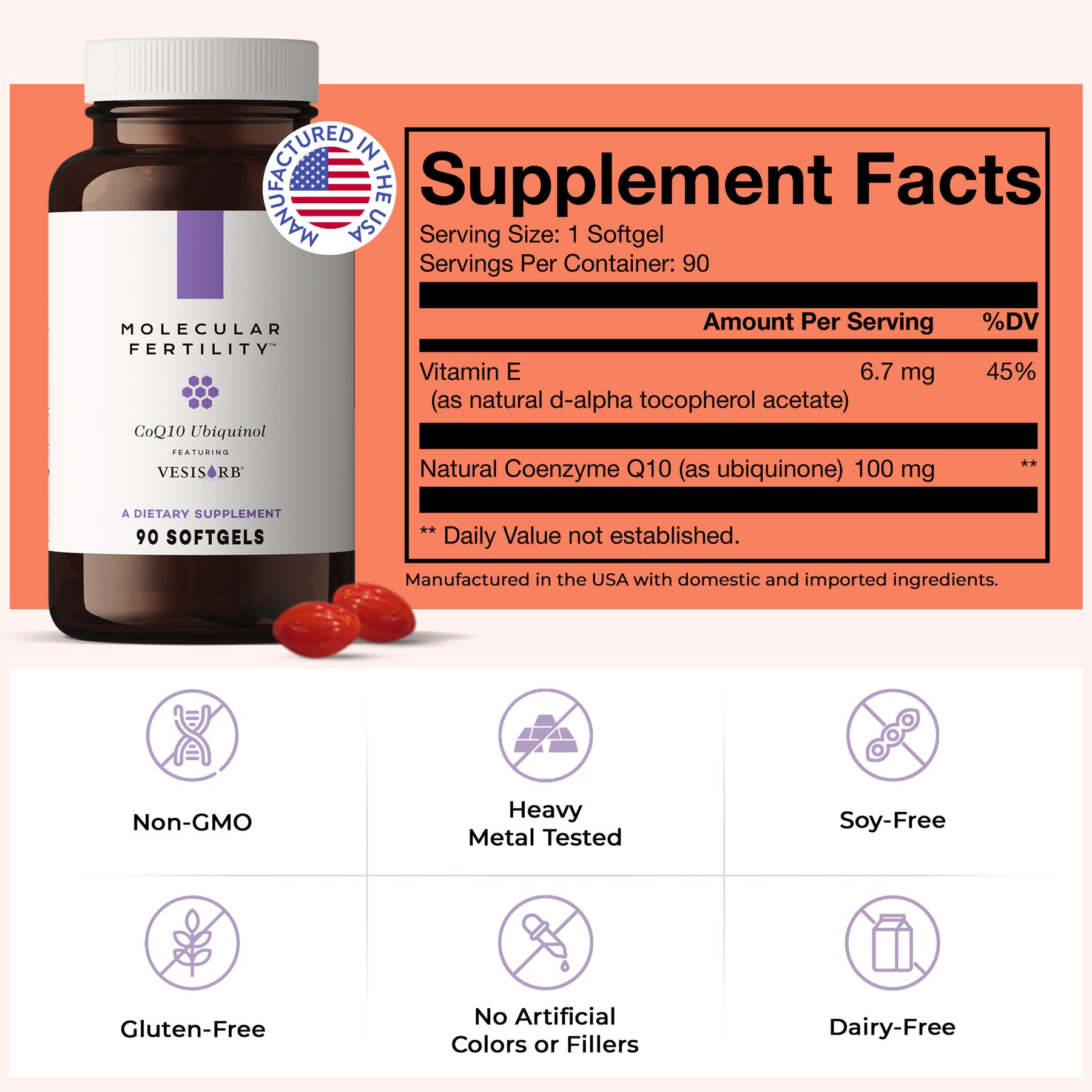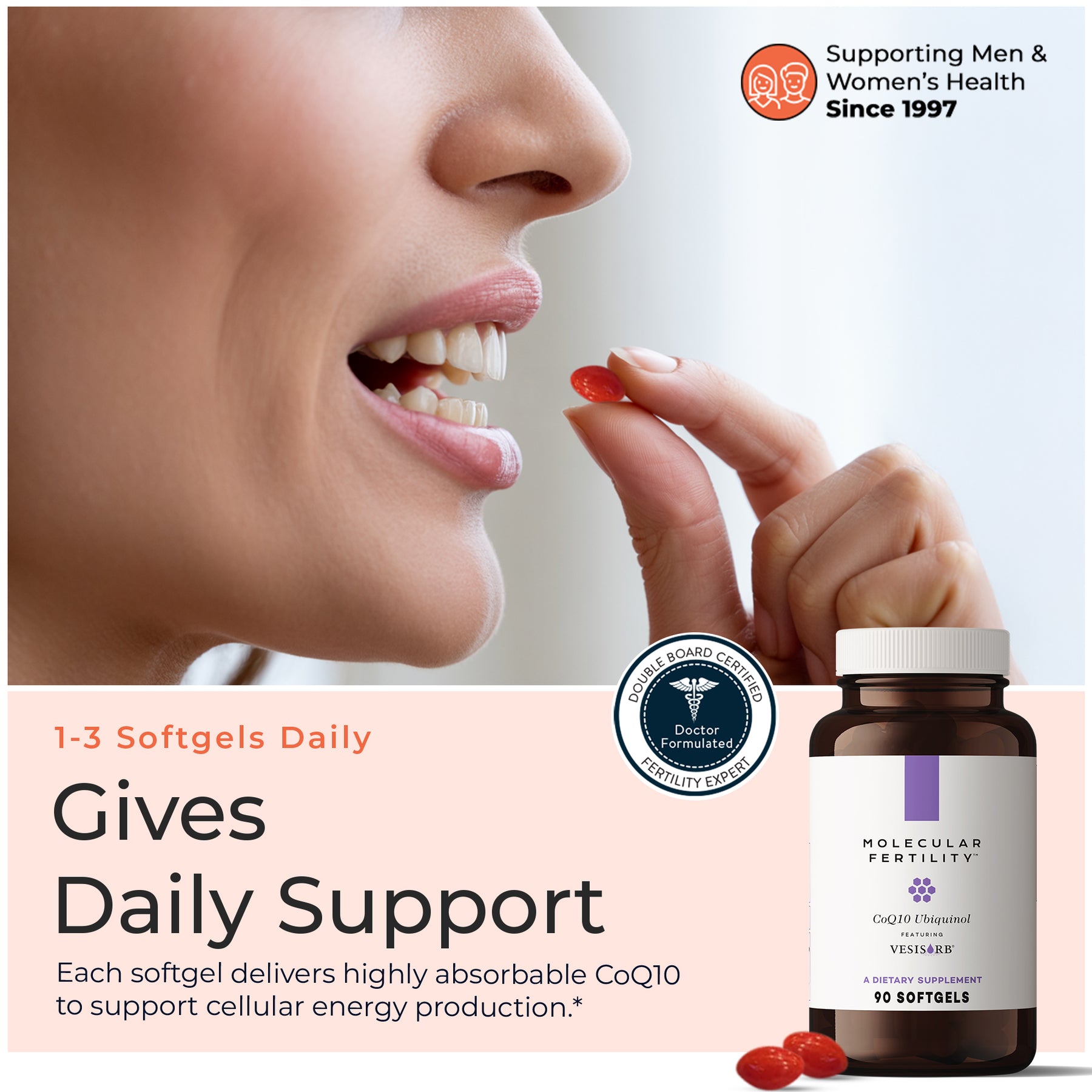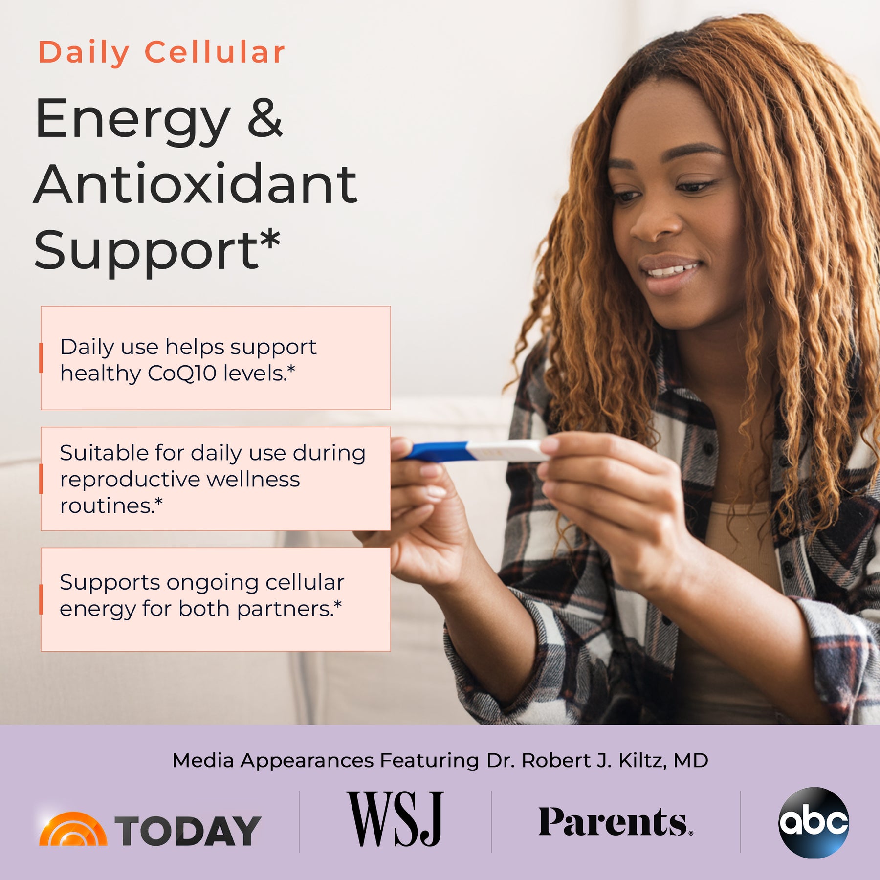 Take 1–3 softgels daily. Consistent use supports mitochondrial function and overall cellular energy as part of a reproductive wellness routine.*